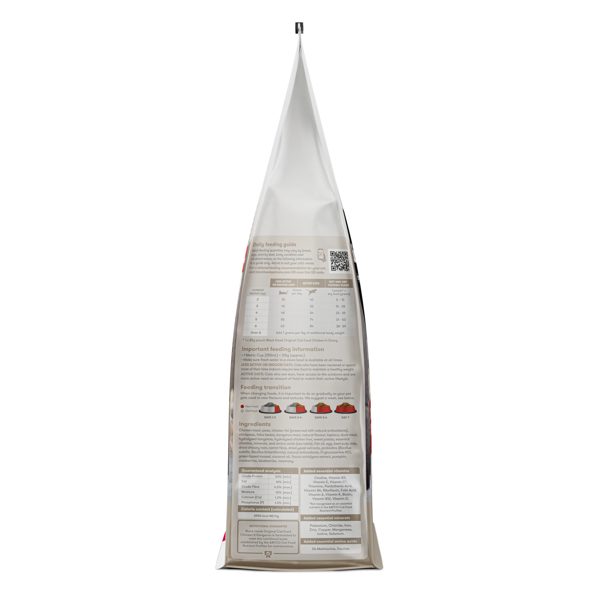 Black Hawk cat foods are formulated to meet the nutritional levels established in the AAFCO Cat Food Nutrient Profiles for maintenance.