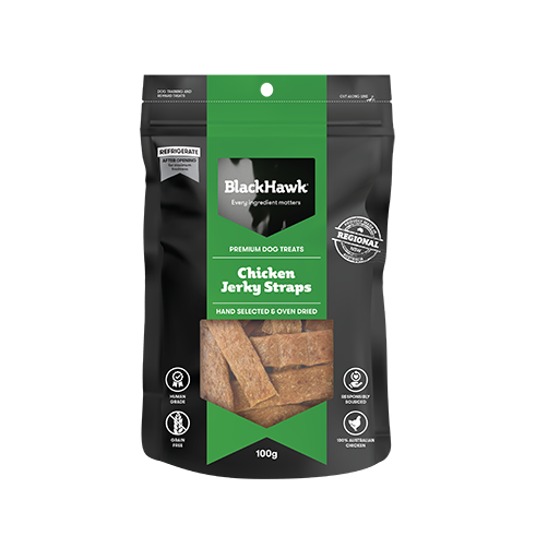 Black Hawk Chicken Jerky Straps are approximately 80mm long and 15mm wide. The result is a high quality treat ideal for medium to large dogs over 12 months of age.