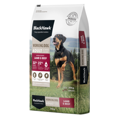 Working dogs are elite endurance athletes and need a quality diet to support their needs. Our Black Hawk Working Dog formula is high in protein and fat for sustained energy. Lamb and beef are rich in zinc and vitamin B12 which promote cardiovascular health, aid metabolism and boost vitality.