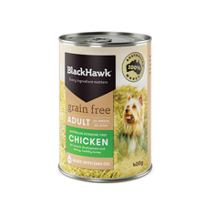 Black Hawk Grain Free wet food provides a complete diet for adult dogs. It is formulated to meet the nutritional levels established by the Association of American Food Control Officials (AAFCO) Dog Food Nutrient Profile for the maintenance of adult dogs.